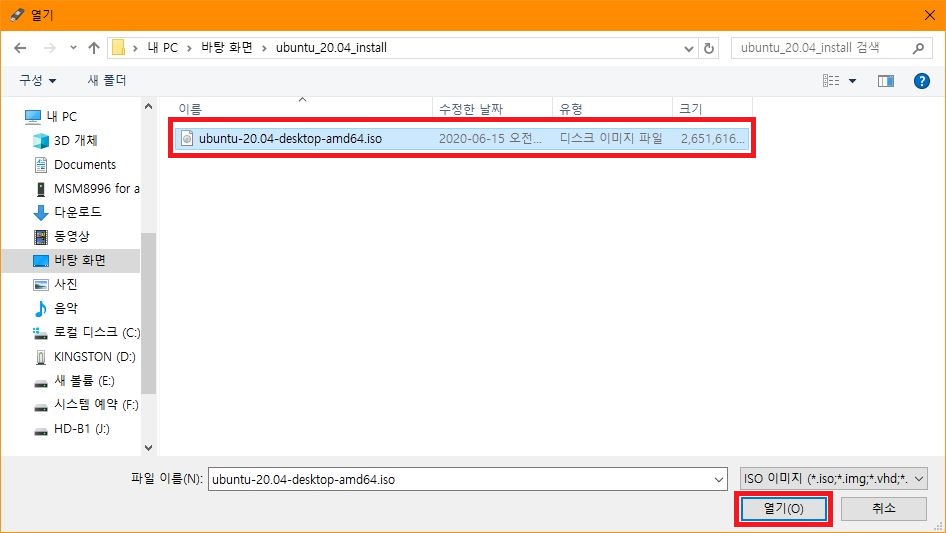 다운로드한 우분투 ISO 파일을 열어줍니다.