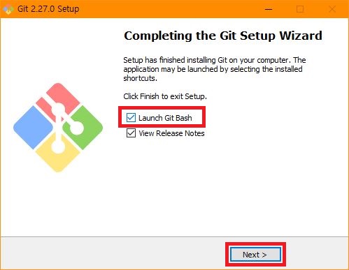 Launch Git Bash를 선택하고 Next를 하여 정상적으로 설치가 완료되었는지 확인합니다.