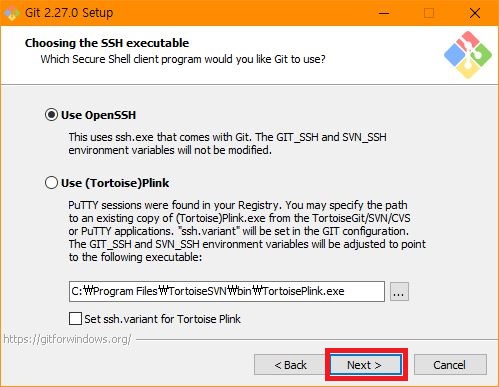 ssh 실행파일에 관련된 내용입니다. Next로 넘어갑니다.