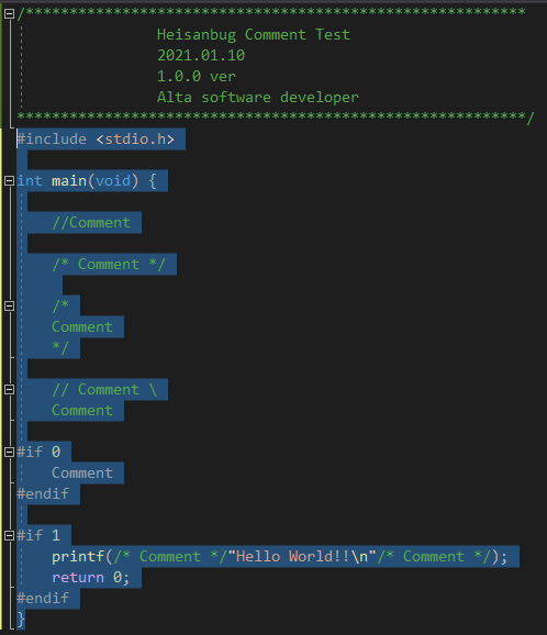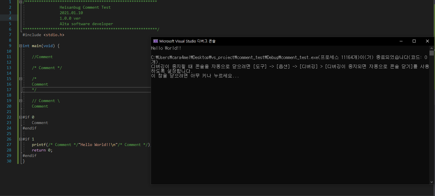 실행하면, 'Comment' 텍스트는 주석처리되어서 컴파일에서 제외됩니다.