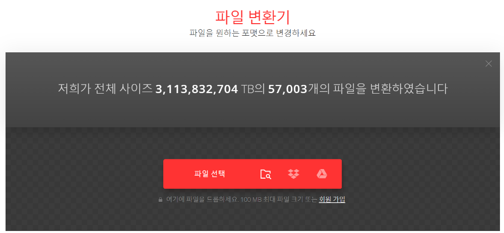 Convertio 웹사이드에 접속합니다. 이후에 파일 선택 버튼으로 변환할 이미지를 선택합니다.